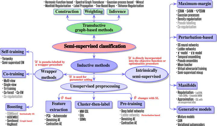 Advances over the past decade at the intersection of information fusion methods and Semi-Supervised Learning (SSL) are investigated in this paper that grapple with challenges related to limited labelled data. To do so, a bibliographic review of papers published since 2013 is presented, in which ensemble methods are combined with new machine learning algorithms. A total of 128 new proposals using SSL algorithms for ensemble construction are identified and classified. All the methods are categorised by approach, ensemble type, and base classifier. Experimental protocols, pre-processing, dataset usage, unlabelled ratios, and statistical tests are also assessed, underlining the major trends, and some shortcomings of particular studies. It is evident from this literature review that foundational algorithms such as self-training and co-training are influencing current developments, and that innovative ensemble techniques are continuing to emerge. Additionally, valuable guidelines are identified in the review for improving research into intrinsically semi-supervised and unsupervised pre-processing methods, especially for regression tasks.